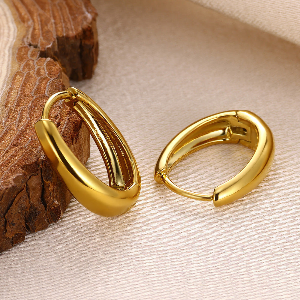 European And American Simple High Luxury 18K Gold Linear Ear Ring